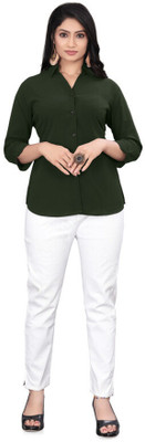 A.C.W Women Solid Casual Green Shirt | Zipri.in