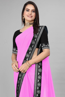 Aai shree khodiyar Solid/Plain, Embellished Daily Wear Georgette Saree(Purple)