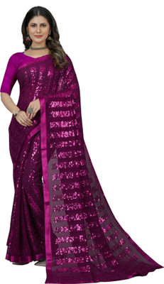 Apnisha Embroidered Bollywood Georgette Saree(Purple)