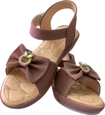 Stylish brown girls’ sandals featuring a big bow with a decorative butterfly charm in the center. Designed with a soft cushioned insole and a durable sole for all-day comfort. Velcro strap closure ensures easy wear and a secure fit. Perfect for daily outings, festive occasions, and casual parties.