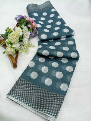 ASHTA Floral Print Kanjivaram Linen Saree(Grey)