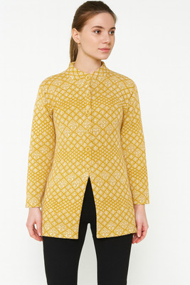 Basis Printed Mandarin Neck Casual Women Yellow Sweater