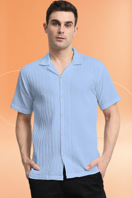 Dharamraj Fashion Men Self Design, Striped Casual Light Blue Shirt