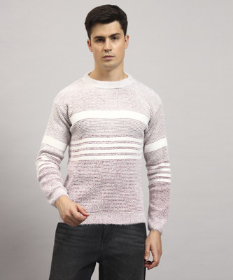 DIMSYCOLLECTION Striped Round Neck Casual Men Purple Sweater