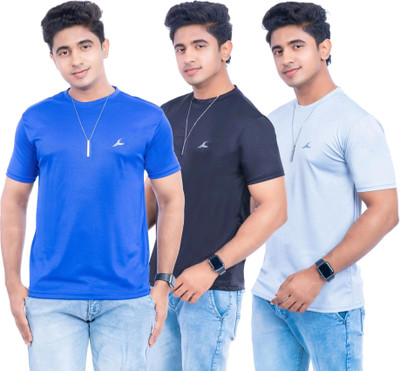 Comfort and Style.This multi purpose T-shirt is made with Dry fit material with sweat-absorbent technology. Elevate your casual wardrobe with this versatile pack of three solid round neck t-shirts from Fashion Territory. These Dry-Fit t-shirts are thoughtfully designed for both casual outings and active pursuits, offering remarkable comfort and style. The classic round neck design pairs effortlessly with jeans, shorts, or track pants, making these t-shirts a perfect choice for your everyday ensemble. The comfortable fit ensures unrestricted movement, whether you're heading to the gym or meeting friends for a casual get-together. These t-shirts are ideal for layering or wearing on their own, adapting seamlessly to different occasions and weather conditions. The pack of three offers excellent value, helping you build a practical wardrobe with essential basics that never go out of style. Perfect for regular wear, these t-shirts maintain their shape and comfort throughout the day.