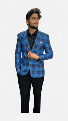 gargian master cut Checkered Single Breasted Formal, Party Men Blazer(Blue)