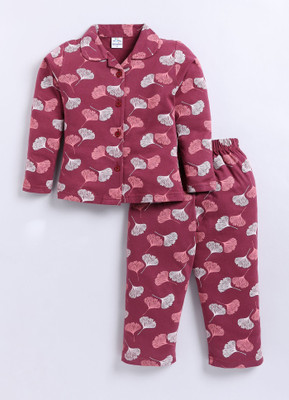GEMINI LABEL Girls Printed Maroon Night Suit Set