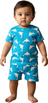 GenBeta Kids Baby Boys & Baby Girls Casual T-shirt Shorts(Blue)