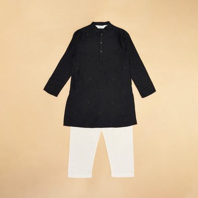 Indus Route by Pantaloons Boys Festive & Party Kurta and Palazzo Set(Black Pack of 1)