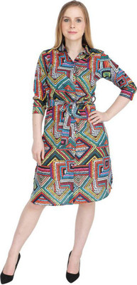Jakanary Women A-line Multicolor Knee Length Dress