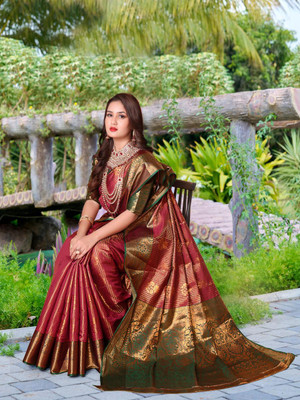 •Work Type :: Woven Saree & Lace I Blouse : Art Silk woven jecquard banarasi I Wash Type: dry & clean is Recommernded.•Occasion : Sarees for women, festive, traditional saree. Best birth-day gift for your loved ones. Each piece is elegantly crafted and will surely add to your wardrobe•Saree Fabric :-Jacquard || Blouse Fabric :- Jacquard•Kanjivaram Kanchipuram Silk saree With Silk Blouse Piece•Saree Length:- 5.5 Meter || Saree Width:- 1.1 Meter || Blouse Piece Length :- 0.80 Meter•Wash Instructions: Machine Wash