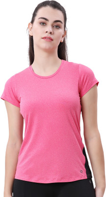 Lactra Solid Women Round Neck Pink T-Shirt