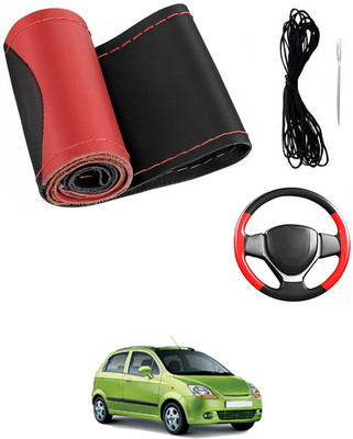 MATIES Hand Stiched Steering Cover For Chevrolet Spark(Red/Black, Leatherite)