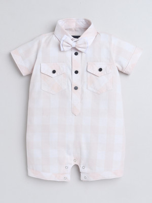 POLKA TOTS Romper For Baby Boys & Baby Girls Casual Checkered Pure Cotton(Pink, Pack of 1)