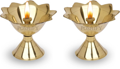 POSHIFY Devdas Brass Diya (pack of 2)- Handcrafted Traditional Indian Oil Lamp for Puja Brass (Pack of 2) Table Diya Set(Height: 1.9 inch)