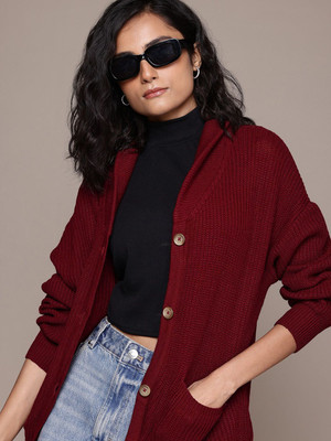 Roadster Solid Casual Women Maroon Sweater | Zipri.in