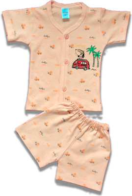 SANIKIDSWEAR Baby Boys & Baby Girls Casual T-shirt Shorts(Orange)