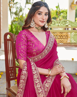 Explore the collection of beautifully designed sarees from Satrani Sarees On Flipkart. Saree Fabric : Chiffon & Blouse Fabric : Brocade :: Saree Color : Rani Pink & Blouse Color : Rani Pink, Golden :: Saree Work :Sequence Embroidery Lace & Blouse Work : Weaving