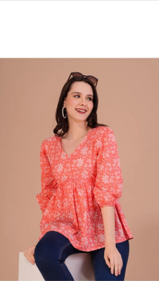 shri siddhi vinayak Women Self Design Tunic Kurta(Orange) | Zipri.in