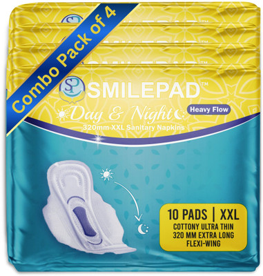 SMILEPAD Day and Night Combo Pack of 4, (XXL) Flexi Wings With 320mm Ultra Thin Sanitary Pad(Pack of 40)