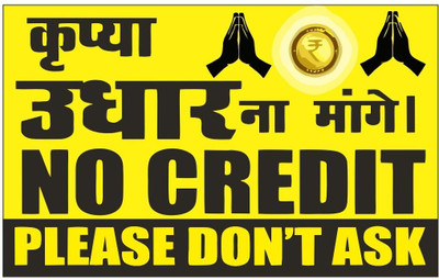 Clearly communicate your business's credit policy with this highly visible and polite "NO CREDIT PLEASE DON'T ASK" sign. Featuring both Hindi ("कृप्या उधार ना मांगे") and English text, along with a symbolic rupee coin and folded hands, this sign ensures your message is understood by a wider audience. The vibrant yellow background with bold black text makes it impossible to miss, helping to manage customer expectations and prevent uncomfortable situations. Ideal for small businesses, retail shops, eateries, and service providers, this durable sign is essential for maintaining clear transaction policies.