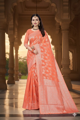 Suntex Woven Banarasi Cotton Blend Saree(Orange)