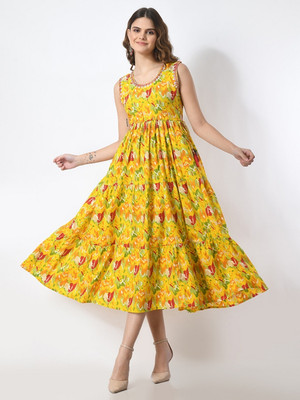 The Loomcraft Women Ethnic Dress Multicolor Midi/Calf Length Dress