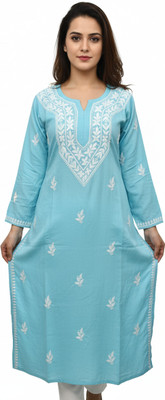 Unstop Women Chikan Embroidery Ethnic Dress Kurta(Light Blue)