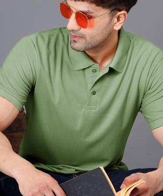 WOOSTRO Solid Men Polo Neck Light Green T-Shirt