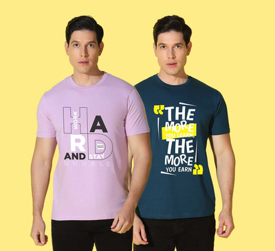 WOOSTRO Typography Men Round Neck Purple, Blue T-Shirt