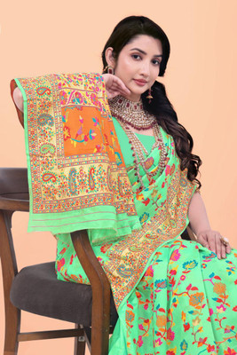 Wovenza Self Design, Woven Bollywood Cotton Blend, Semi-Pashmina Saree(Light Green) | Zipri.in