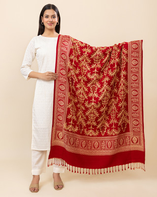 Wrap Me Warm Viscose, Acrylic, Poly Wool Embroidered Women Shawl(Maroon) | Zipri.in