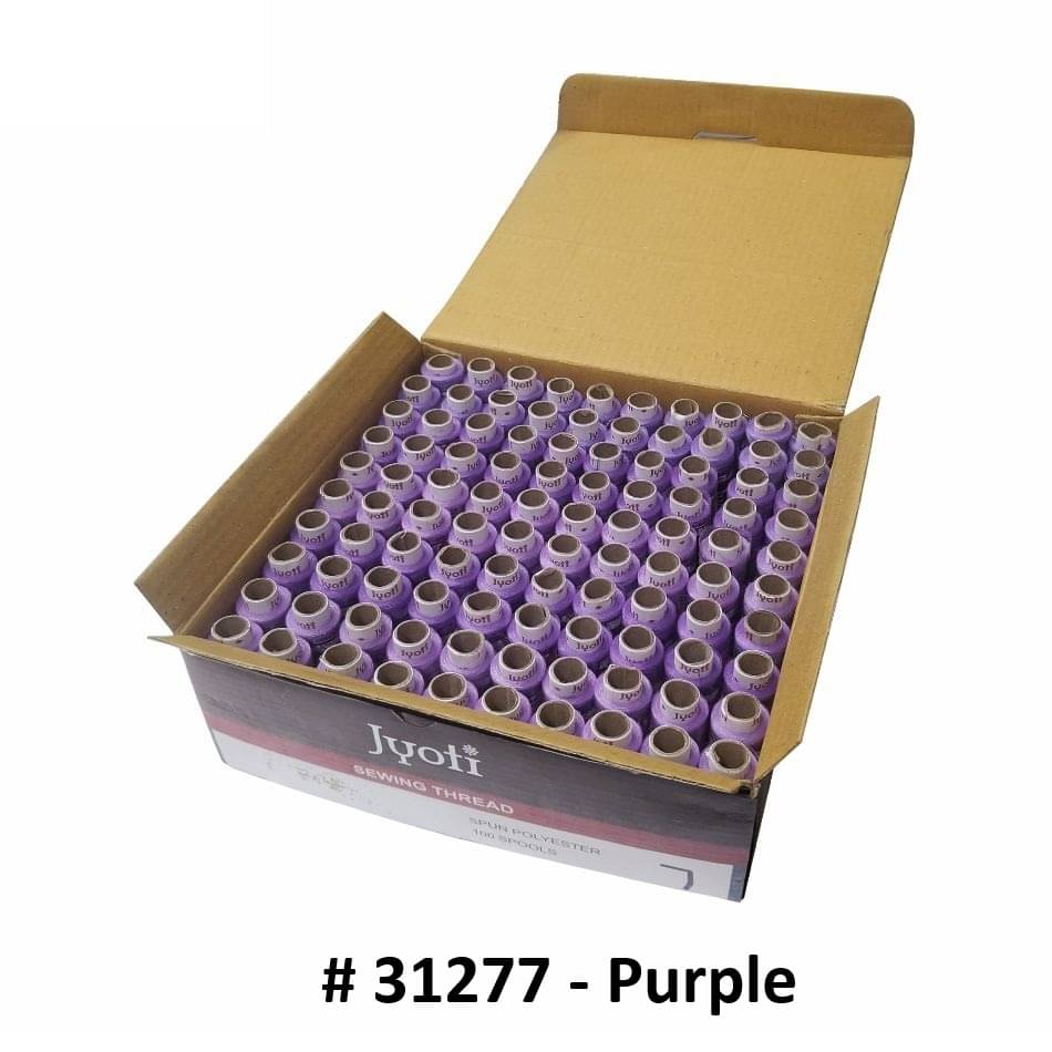 Jyoti Sewing Thread Polyester, Sewing & Tailoring Craft, Ladies Special Dhaga, Spool for Stitching, Overlock, 2 Ply / 52 Count with Lubrication - # 31277, (100 Tubes of Purple in 180 Meters)