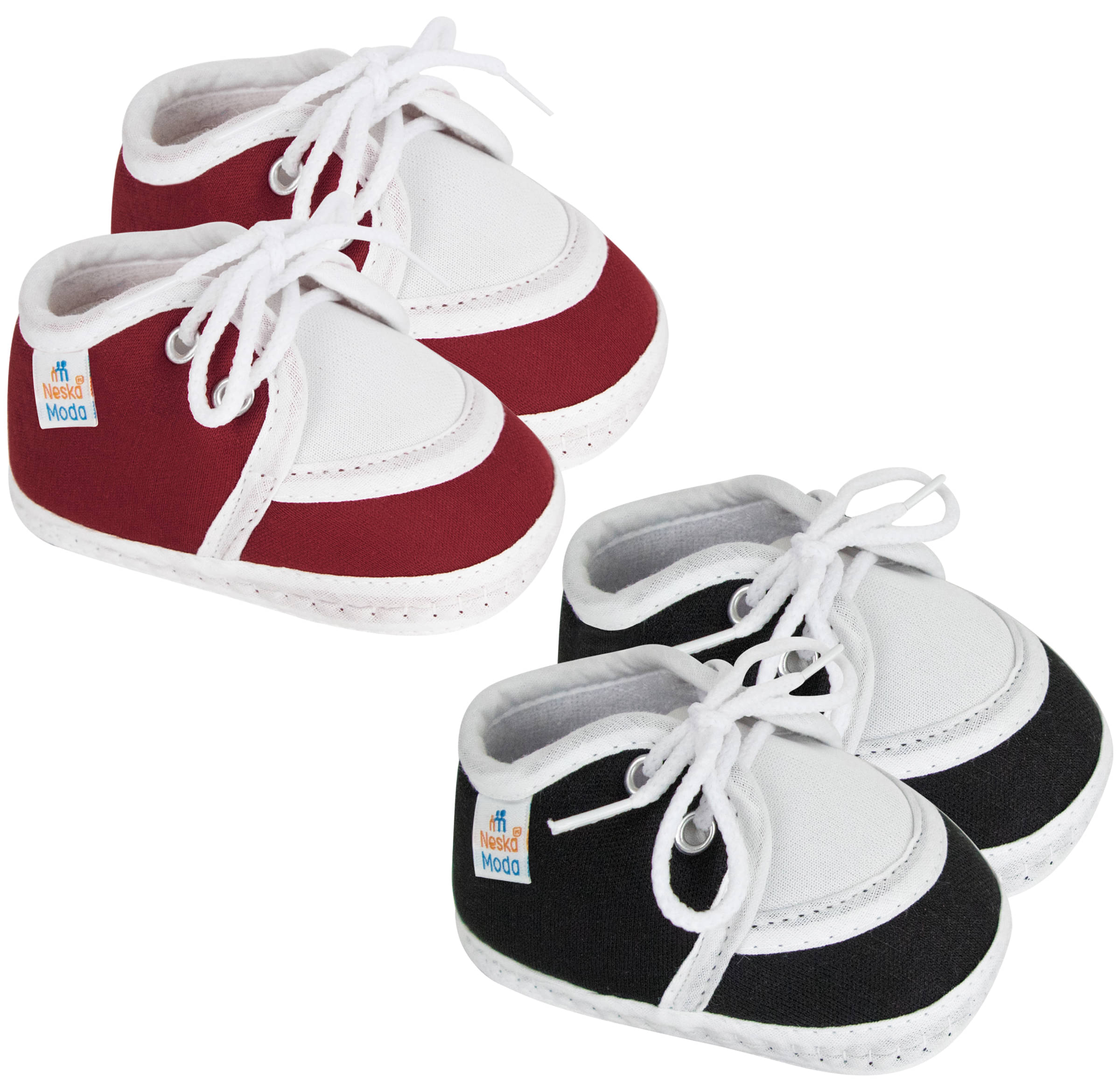 Neska Moda Set of 2 Pair Baby Boys & Baby Girls Lace Cotton Booties For 0 to 6 Months (Maroon,Black) | Zipri.in