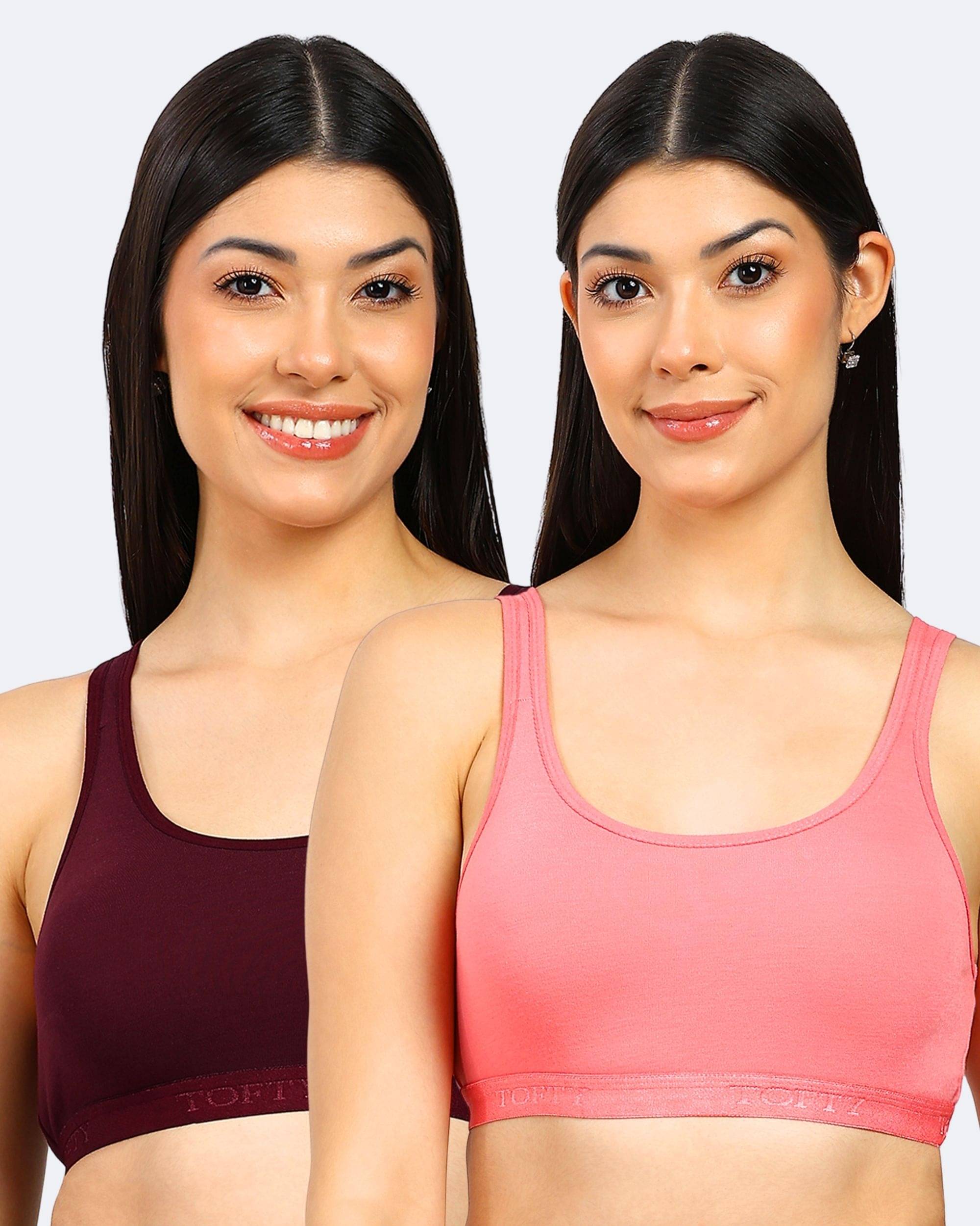 TOFTY Pack of 2 Cotton Blend Non Padded Sports Bra For Women ( Multicolor 3 )